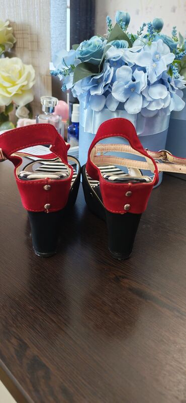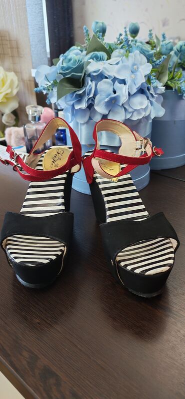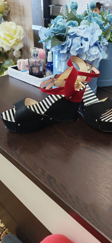 Ağ rəngli qadın platforma sandaleti 1defe istfade olunub cox rahatdir - Model: Ayaqqabı yazılı içlik, açıq burunlu, çarpaz ön qayışlı - Rəng: İvory/ağ - Ölçü: 38 (altlıqda qeyd olunub) - Daban: H...