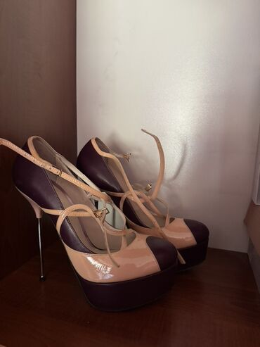 - Qadın ayaqqabısı, açıq burunlu platformalı model - Rəng: pudra/solğun çəhrayı - Material: parlaq səthli (lak effektli) üstlük, süni dəri daxili - Hündurlük: yüksək daban (təxmini 11–12 sm), ön hi...