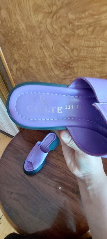 Məhsul: Qadın açıq burnu olan mavi topuqlu terlik-sandal - Brend: Favi (qutuda qeyd olunub) - Rəng: Göy/mavi - Üst hissə: Elastik trikotaj material (toxuma görünüşlü), ayağı yumşaq şəkildə qucaqla...