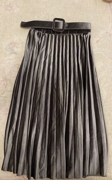 Qara plisəli ətək - Rəng: dərin qara - Model: orta uzunluqda (midi), klassik plisəli kəsim - Material görünüşü: atlas/saçaqlı parıltılı effekt verən, yumşaq düşümlü parça - Bel hissəsi: elastik qu...