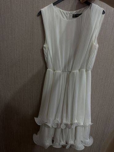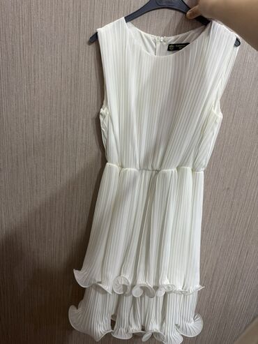 Ağ rəngli, plisəli qadın paltarı