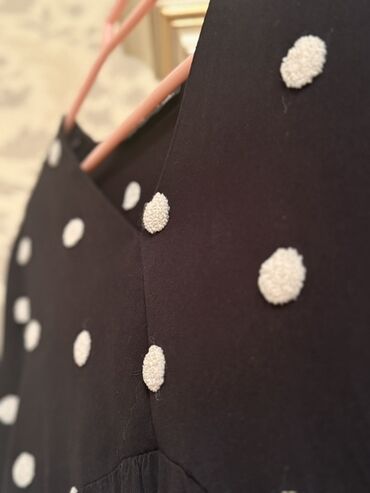 - Parça: nazik, axıcı toxuma; üzərində teksturalı ağ xal (relief effektli nöqtələr)