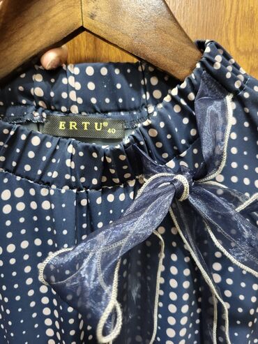 Klassik polka-dot dizaynı ilə həm gündəlik, həm də iş/şənlik kombinlərinə uyğundur. Eyni rəngli köynək yaxası lent və kəmər dəstinə daxildir. ERTU etiketli, ölçü 40.