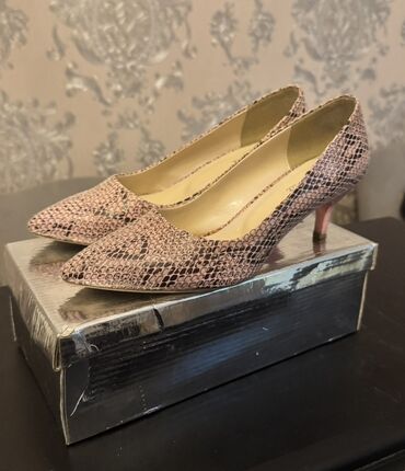 - Rəng və naxış: Pudra-çəhrayı tonlarda ilan dərisi fakturalı üst səth, dabanda açıq çəhrayı rəng