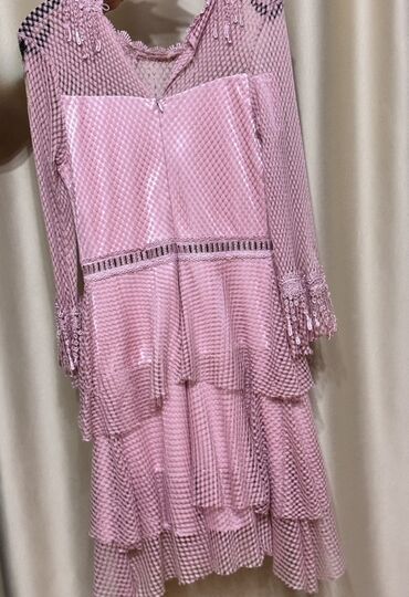 Zərif krujeva, parıltılı faktura və qat-qat ətək romantik görünüş yaradır. Rahat oturuş üçün astarlı, diqqətçəkən detallarla.