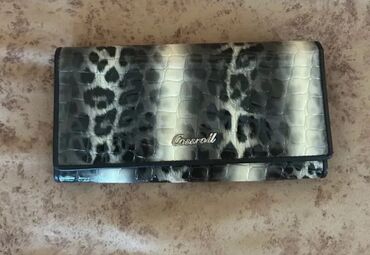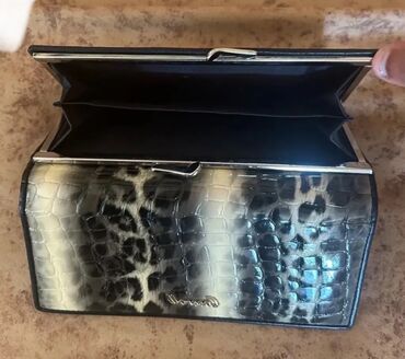 Leopar naxışlı kompak pulqabı - Rəng/naxış: bej fon üzərində qara leopar printi - Material: teksturalı süni dəri (asfalt tipli səth), formanı saxlayan sərt korpus - Bağlanma: üçtərəfli metal ferme...