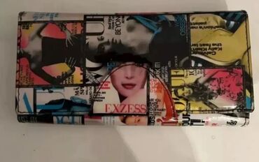 1) Rəngli jurnalkollaj printli lak örtüklü pulqabı – qapaqlı konstruksiya, bir neçə bölmə və kart yuvaları. Xaricində moda jurnalı üslubunda şəkillər və yazılar.