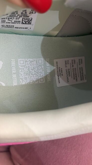 Puma orijinal qadın krossovkası Есть кьюаркод на фото можете пробить - Model: Puma (etiketdə 381889-02 kodu görünür) - Ölçü: EUR 37 (UK 4 / US W 6.5 / 230 mm) - Rəng: Tam qara üst, mavi-dümrəy dil...