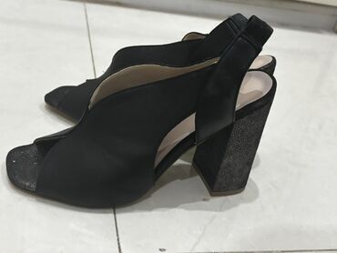 Qadın ayaqqabısı – qara, qalın topuqlu, açıq burunlu model