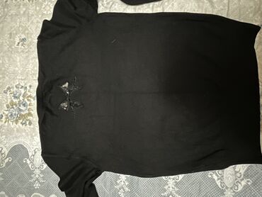 Qara rəngli qadın sviteri – qısa (crop) model. - Yüksək boğazlı (turtleneck) dizayn - Uzun, dar ətəkli qollar - İncə, elastik trikotaj parça, nazik zolaqlı toxuma - Minimalist, bədənə oturan kə...