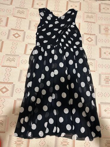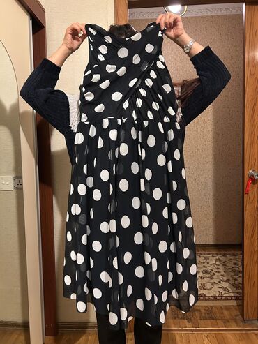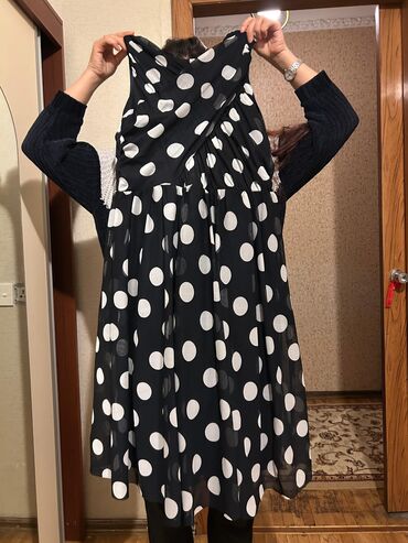 Qara rəngdə, iri ağ xallı qadın paltarı.