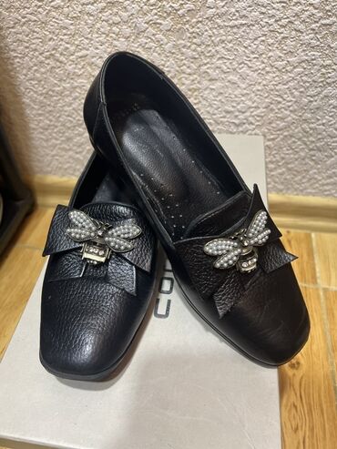 Qara laklı qadın lofyerləri – Dusto Holiday - Material: parlaq laklı üst (patent), içlik yumşaq astarlı - Rəng: qara - Model: klassik loafer - Üz hissə: daşlı, parıltılı kordon-düyün bəzəyi - Daba...