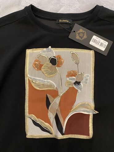 - Üst hissə: ön tərəfdə qızılı çərçivəli, relyefli/3D təsirli floral aplikasiya-panelli dekor (narıncı, bej, ağ və qara çalarlar)