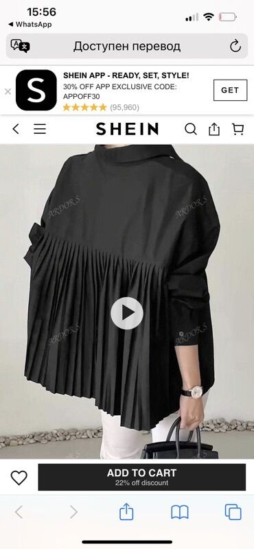 Qara rəngli qadın köynəyi. Bu köynək klassik yaxalıq və düyməli bağlamaya malikdir. Arxa hissəsində büzməli detallar var ki, bu da ona müasir və zərif görünüş verir. Uzun qolları və geniş kəsimi rahatlıq təmin edir. Gündəlik geyim üçün uyğundur. shein sifaris olunub