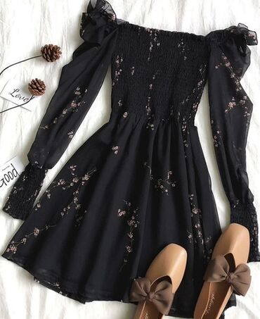 Qara rəngli, uzun qollu və çiçək naxışlı qolları olan zərif don. Donun aşağı hissəsində incə krujeva bəzəyi var. Gündəlik gəzintilər və ya xüsusi tədbirlər üçün uyğundur. Qiymətdə razılaşmaq olar.