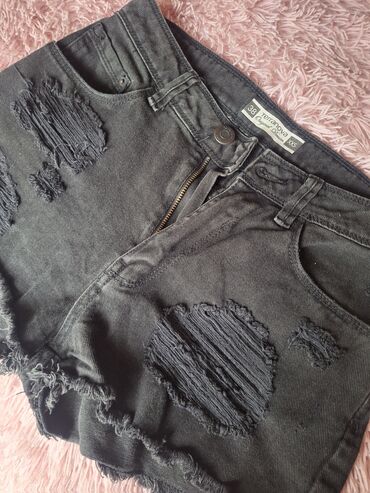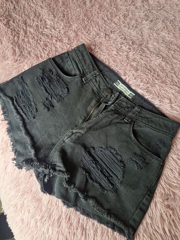 Pull&Bear qadın şort - Rəng: qara - Model: denim/jeans şort, qısa kəsim - Bel: orta/hündür bel - Ölçü etiketləri: EUR 36, USA 4, MEX 26/ RAZMER S bir defe geyinilib