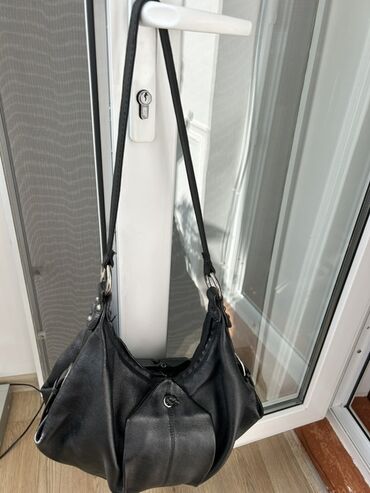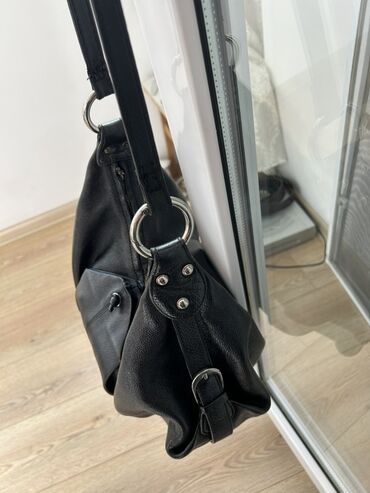 Qara çiyin çantası – dəridən, kompakt ölçülü. Xüsusiyyətlər: -
