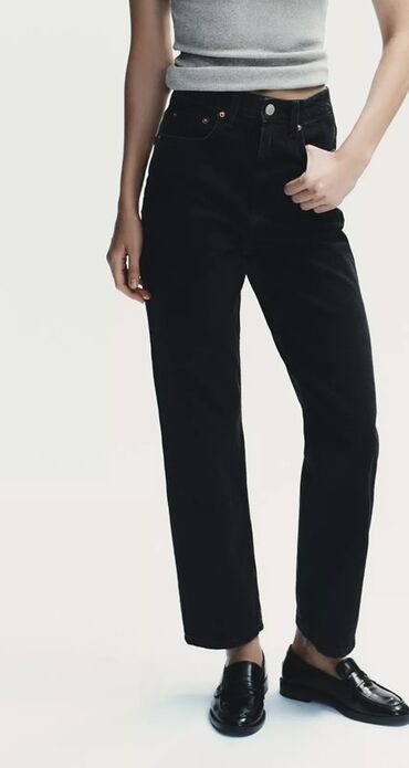 ZARA qadın cins şalvar - Model: klassik beş ciblə düz kəsim (straight) - Bel: yüksək bel - Rəng: açıq mavi “washed” denim - Bəylər: metal düymə və fermuar bağlanma, mis rəngli rivetlər - P...