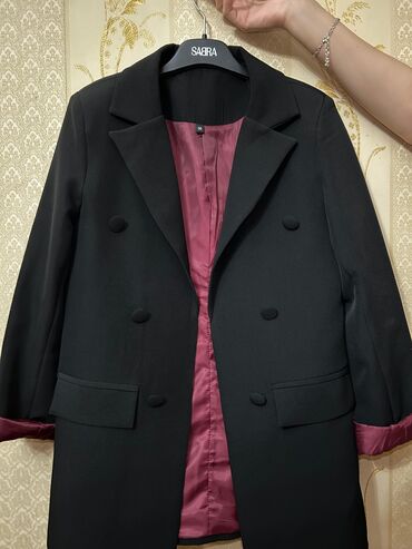 Qadın geyimləri dəsti 1) Qara bleizer - Marka: Koton - Yaxası: klassik V-yaxa, tək düyməli - Astar: ağ rəng, xırda qara nöqtəli; qol ucları astarla bükməli dizayn - Ciblər: iki ədəd dekorativ cibi...