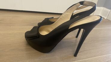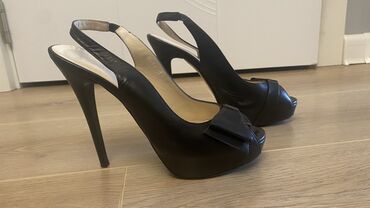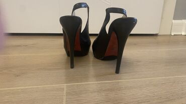 Qara rəngli klassik qadın tufliləri - Model: sivri burunlu, nazik və hündür tapança (stilet) daban - Dizayn: yan hissədə açıq kəsim, minimalistik və zərif siluet - Material: hamar, yüngül parıltıl...