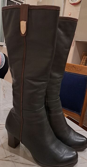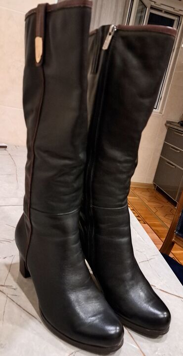 Qadın dəri çəkmələri - Rəng: qara, qəhvəyi detallarla - Material