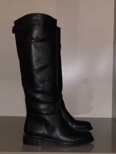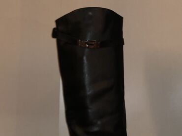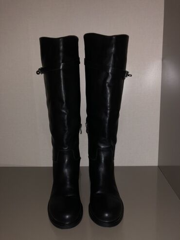 Qadın üçün dizə qədər uzunluqda qara dəri çəkmə
