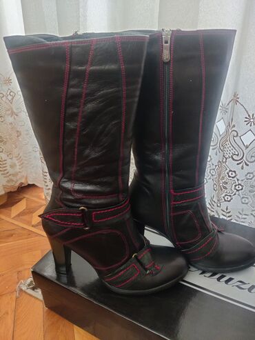 Qadın dəridən uzun çəkmə