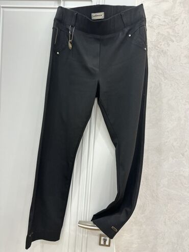Razmer 48-50……………… Qara rəngli qadın şalvarı - Kəsim: Düz, dar olmayan klassik kəsim - Beldən rezinli rahat bel hissəsi (kəmərsiz) - Yan tərəfdə gizli/kiçik kəsik ciblər görünüşü - Parça: elastik,...