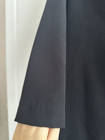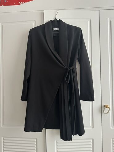 Tərkib etiketi görünmür; vizual olaraq incə toxumalı, rahat fallı parça. Minimalist siluet və plise aksenti ilə eleqant görünüş yaradır.