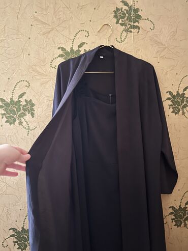 Qadın geyim dəsti – 4 parçadan ibarət - Tökmə naxışlı açıq toxunuşlu kardiqan: qəhvəyi/taun rəngində, hava keçirən, uzun model. Kvadratvari deşikli naxış, yumşaq iplik, açıq ön hissə (knopkasız/fe...