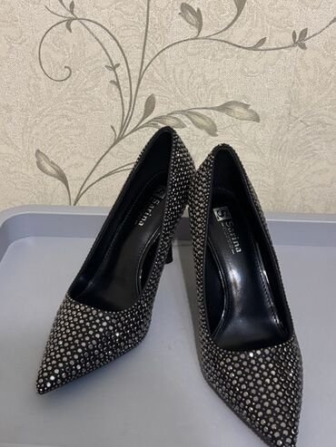 - Dizayn detalları: sıx bəzəkli rhinestone daşlar, yan və burun hissədə tam örtüklü; təmiz tikişlər; ayaqüstü kəsimi klassik, geyimlərlə asan uyğunlaşır