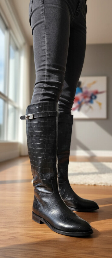 Qadın uzun temiz dəri çəkmə baha alınıb - Rəng: tünd qəhvəyi -