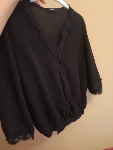 Qara zərif bluz - Rəng: Qara - Parça: İncə şəbəkə/til parça, xırda parıltı detallar ilə - Dizayn: Dairəvi yaxa, 3/4 uzunluqda şəffaf qollar - Aşağı hissə: Ornamenti olan krujeva (qıpqara) ətək kən...