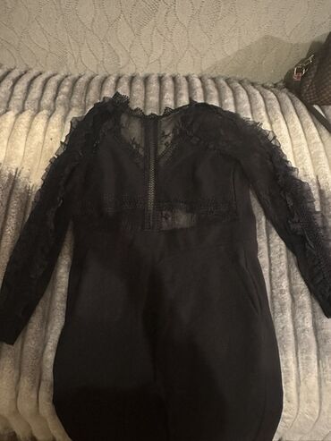Qadın kombinezonu – qara rəngdə, zərif krujeva və şifon detallar ilə.