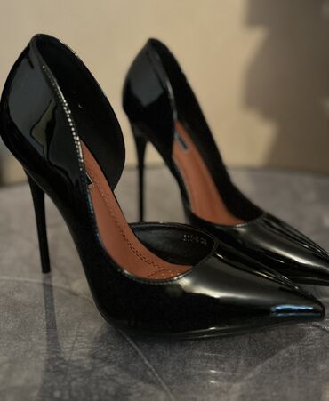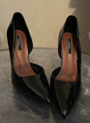 Qadın klassik tufli – Buca Moda - Rəng: qara - Ölçü: 38 (etiketdə göstərilib) - Model: sivri burunlu, klassik “pump” stil - Hündürlük: nazik dikdaban (stiletto), təqribən 8–10 sm - Material: hamar,...