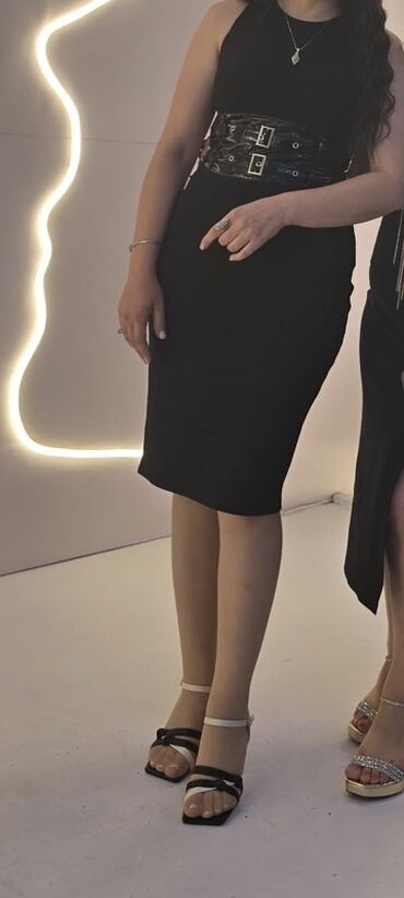 Qadın geyim dəsti – qara midi don və geniş kəmər