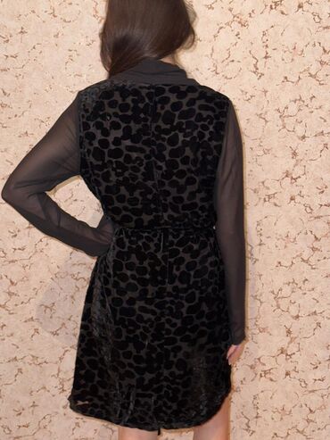 - Material: məxmərə bənzər tüklü naxışlı parça (üz hissə), şəffaf şifon uzun qollar