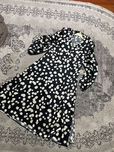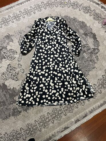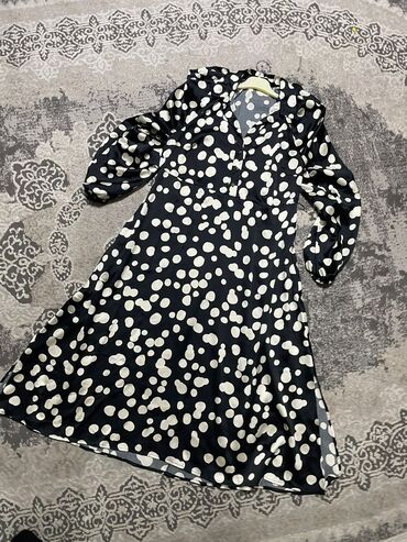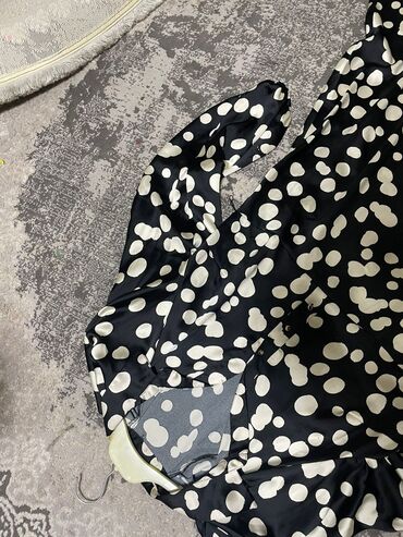 Qara rəngli, krem-ağ iri-xırda nöqtə naxışlı qadın donu.