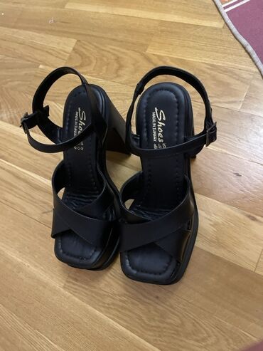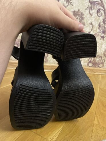 Qara dəbli qadın sandal - Brend detalı: üst hissədə kəsmə loqolu