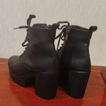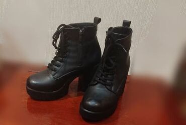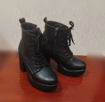 Qadınlar üçün qara topuqlu qısa çəkmə - Model: nazik burun, minimal dizaynlı ankle boot - Rəng: qara - Topuq: enli kvadrat formalı, təxminən 7.5 sm (2.95 inch) - Material görünüşü: dərivarı hamar ...