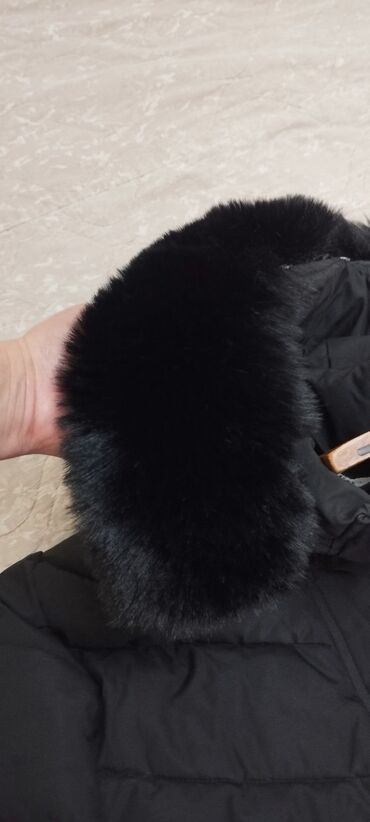 - Kapüşon: geniş süni tüklü haşiyə (çıxarıla bilən snap düymələr görünür)