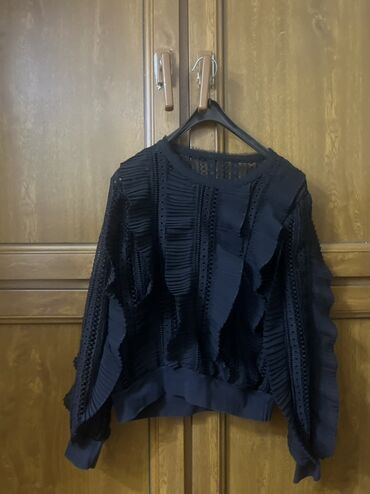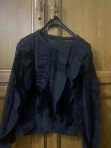 Qara rəngli qadın bluz/kofta - Dizayn: Ön və arxa hissədə geniş