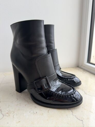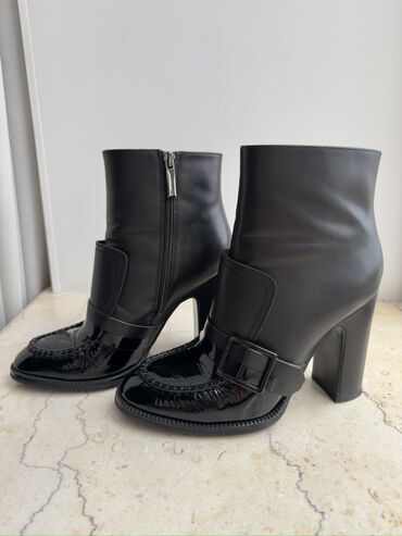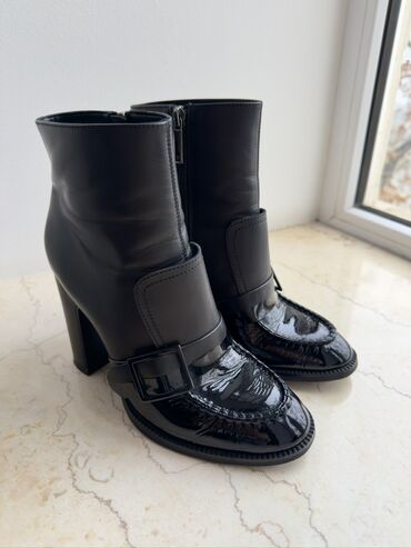 Qadın botları – qara rəng.Razılaşma yolu ilə satılır.1dəfə geyinilib.Səhv razmer seçiminə görə satılır - Model: qısa boğazlı, klassik sivri burun - Material: hamar, parlaq üst material (eko‑dəri g...