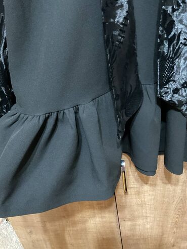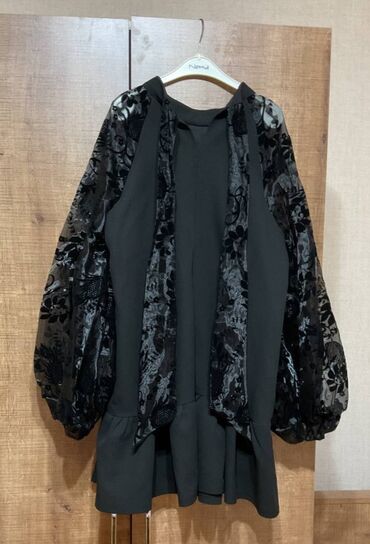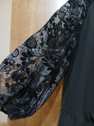 Qara rəngdə, qadın paltarı. Yuxarı hissəsi delikli ağ-qara krujeva/parça ilə işlənib, sinə və qollarda arı və çiçək motivli rəngarəng naxışlı bəzəklər var. Balıqçı tipli yüngül yaxalıq, 3/4-ə yaxı...15 AZN