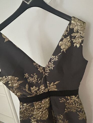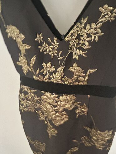 Qara rəngli, zərif qızılı naxışlarla bəzədilmiş kokteyl/axşam libası.
