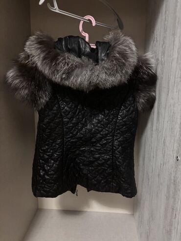 Qadınlar üçün qolsuz dərili kürklü jilet - Material: xarici hissə qara eko‑dəri, daxili hissə krem rəngli sıx süni kürk (şerp) - Bağlanma: ön hissədə fermuar - Dizayn: geniş kürklü yaxa, qolların ...