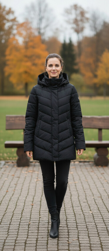 Qadın qış gödəkçəsi – qara rəng - İsti, yüngül şişmə tipli parça -