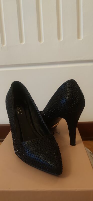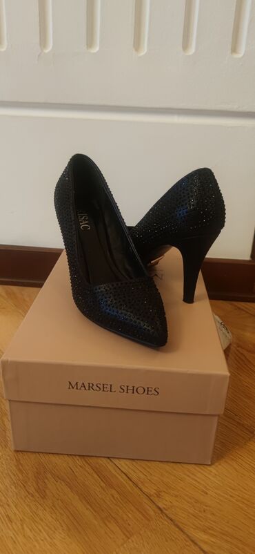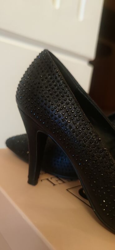 Qadın klassik tuflisi – qara rəngli, şıq və minimal dizayn. - Model: nazik hündür dabanlı (stiletto) - Daban hündürlüyü: təxminən 10–11 sm - Burun forması: uclu (pointed toe) - Material: hamar tek...