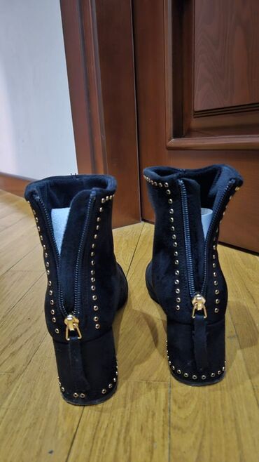 - Dizayn: boğaz kənarlarında, arxa tikiş boyunca və daban kənarında qızılı rəngli kiçik metal halqalar (studlar)