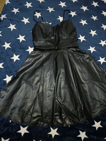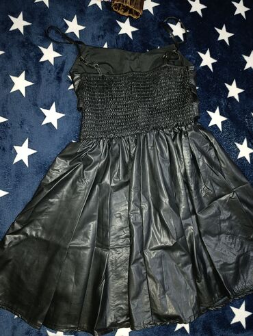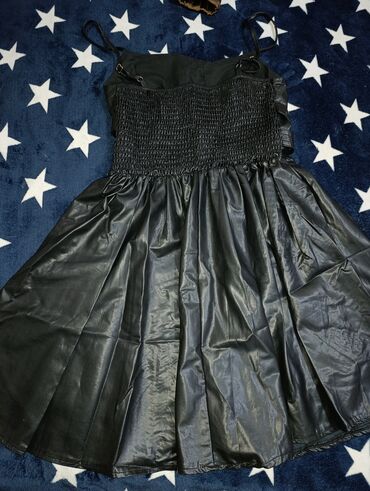Yenidir Qara rəngli, süni dəri effektli qolsuz don.